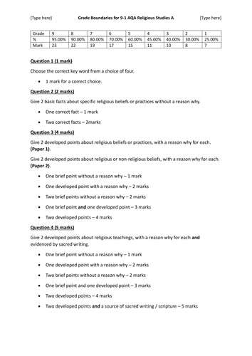 If there is a band of marks allocated to a level discrimination should be made with reference to the development of the answer. You will take Paper 1A and Paper 2A. GCSE Religious Studies B 8063 Teaching from September 2016.
